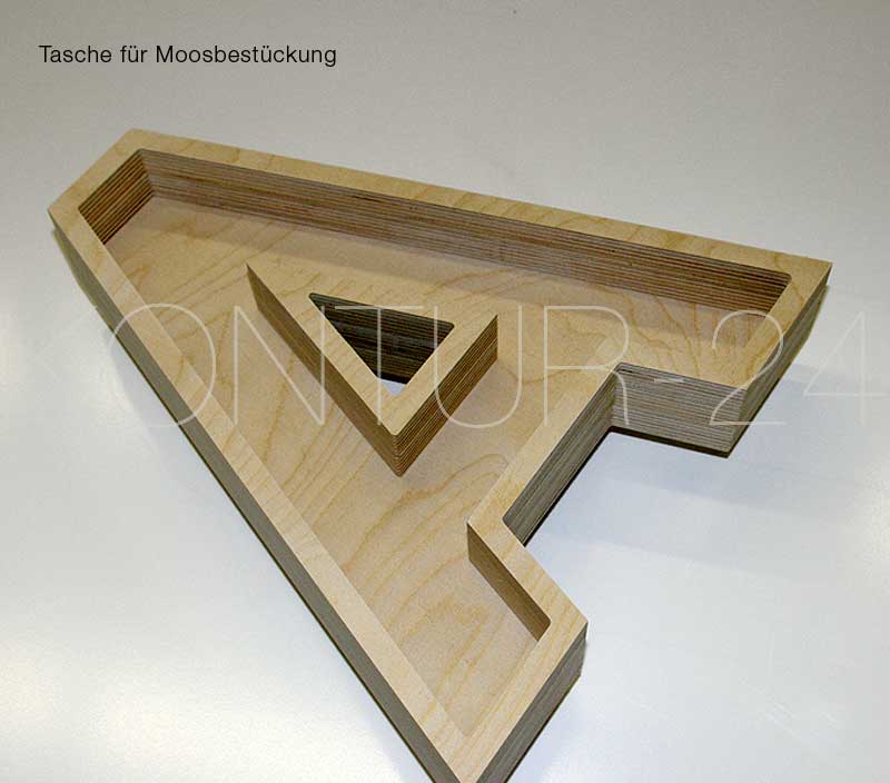 Birke-Multiplex mit Tasche für Moos / LED-Rückleuchter